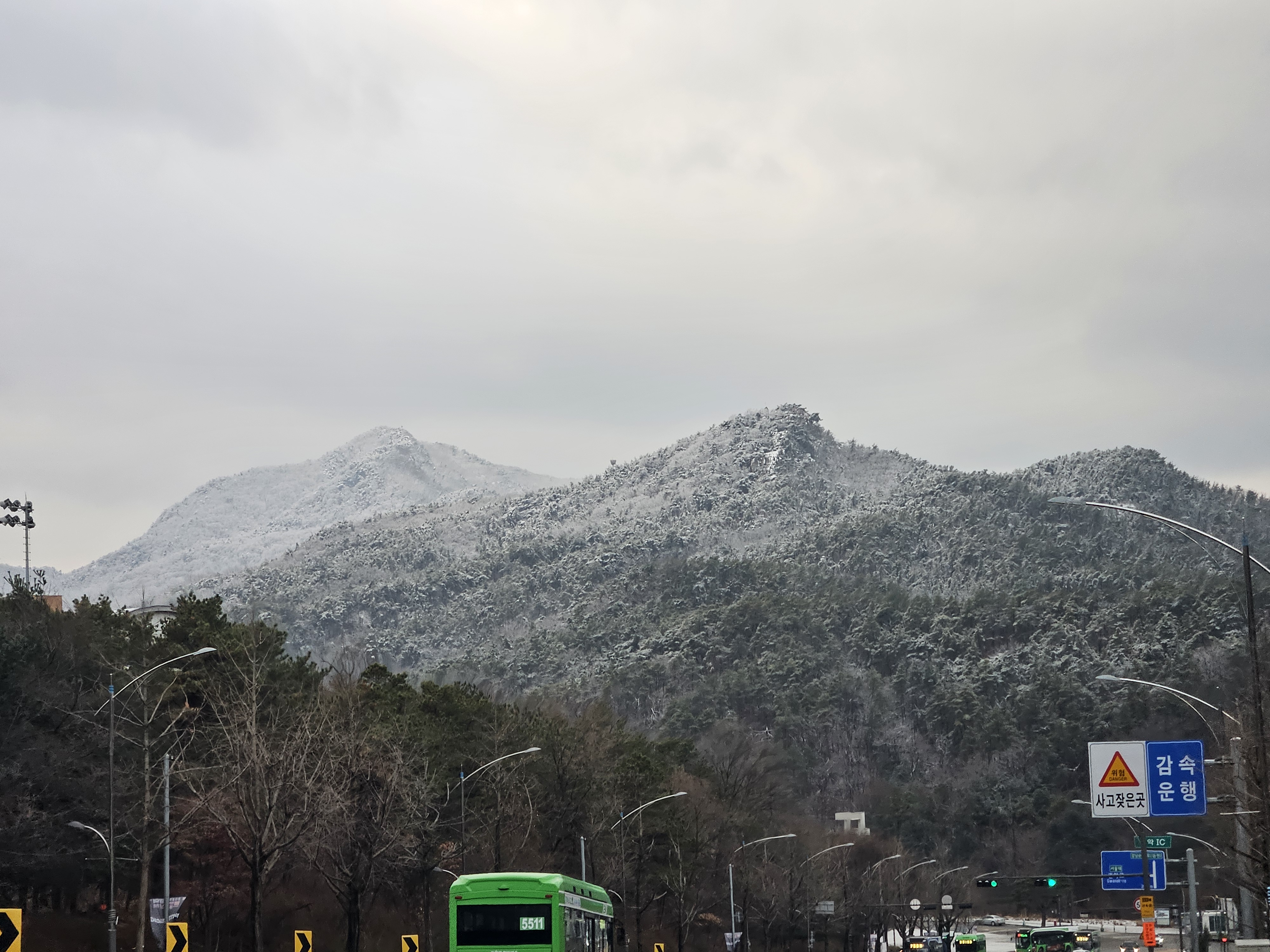 가는 길에 - 어제 눈이 내려서 관악산이 설산이 되어서 장관이었네요.